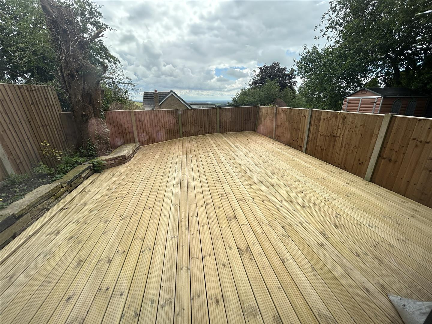 Large decked courtyard to rear.