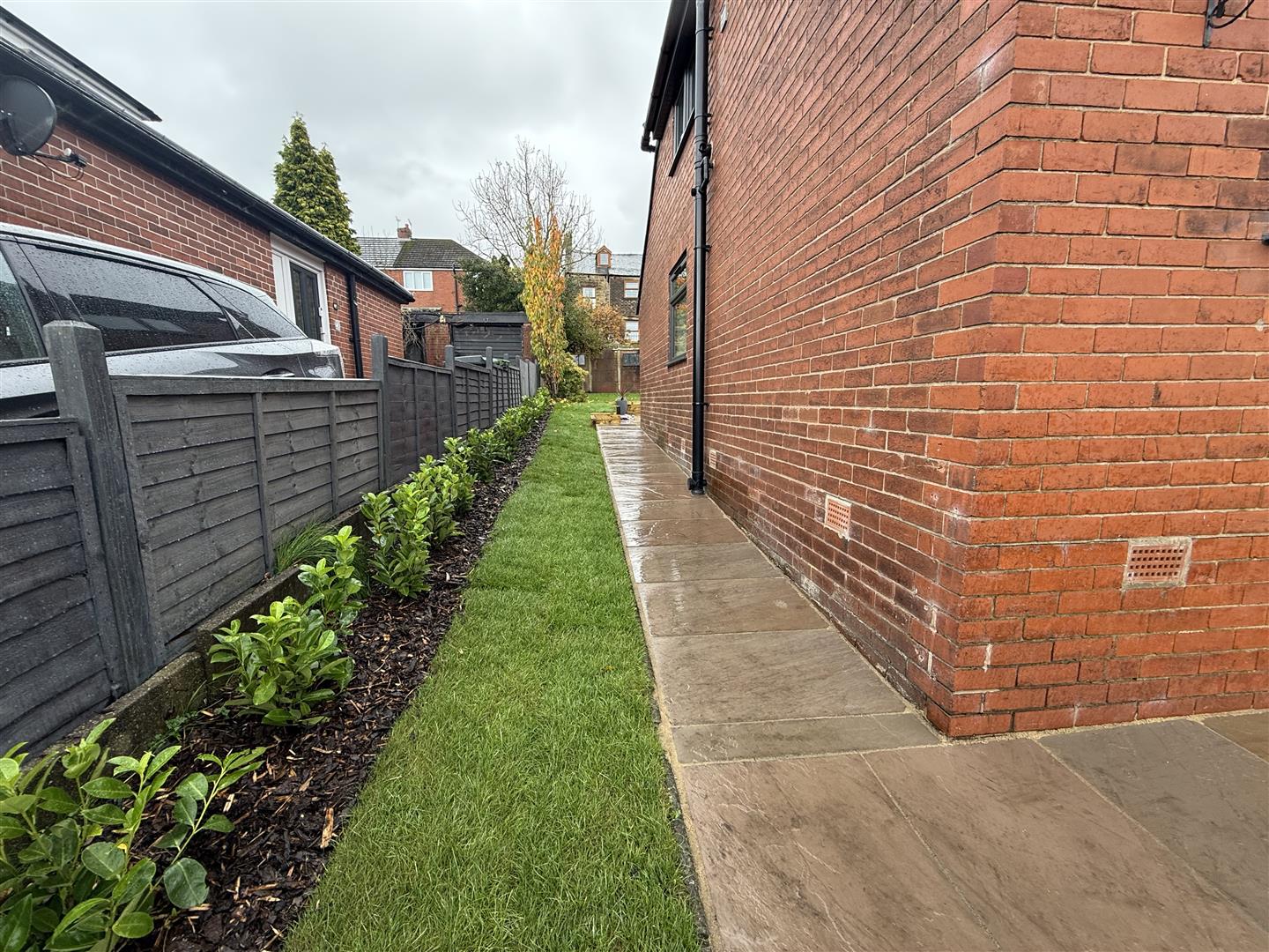 Parking at the front for 2 cars. Side passageway with a garden area leading to the rear garden. The rear is spacious with a large patio area and landscaped gardens. There is a rear driveway and garage.