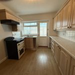 Single drainer, stainless steel, sink unit. A range of wall and base units with worktops and splash back tiling.