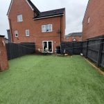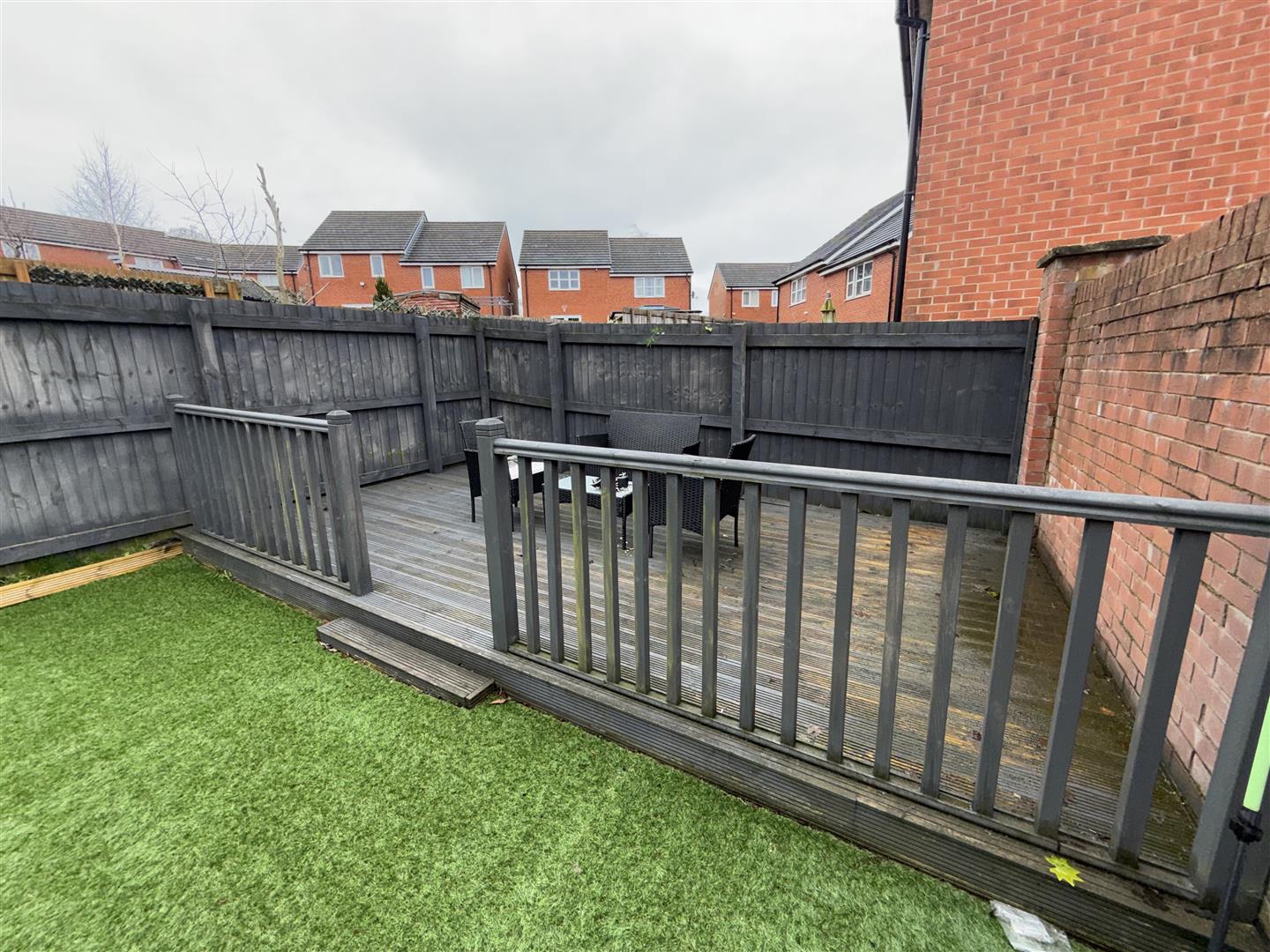 Front garden, side driveway and a rear garden with artificial grass and a decked patio area.