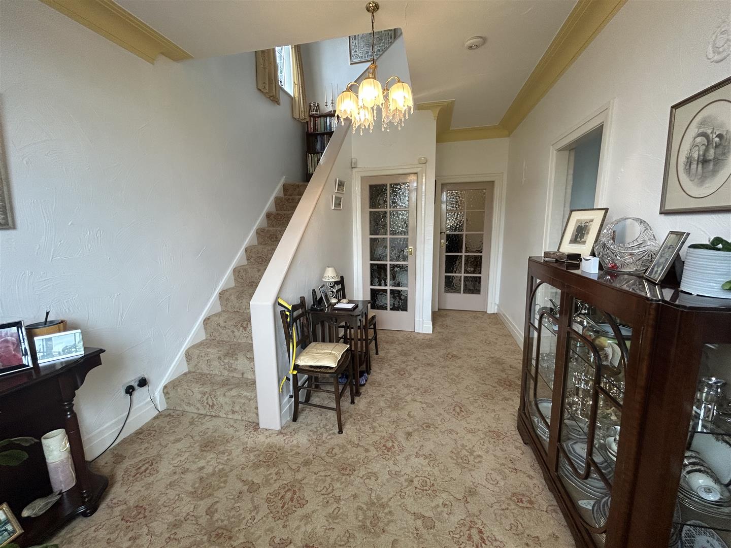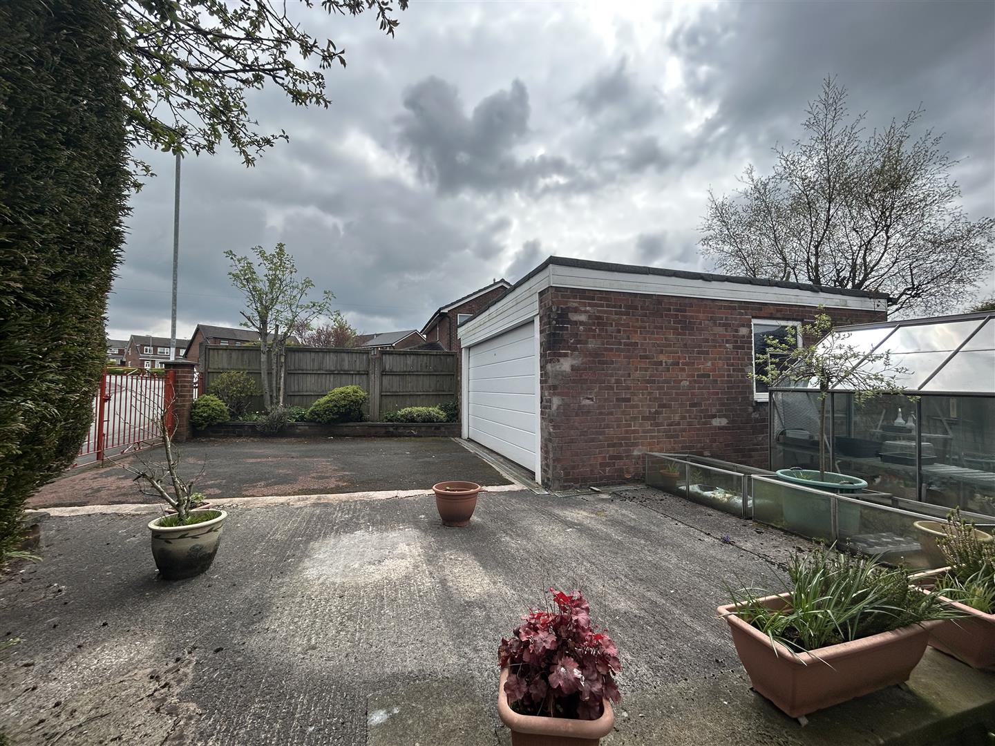 There is a large front garden, two side passageways leading to the rear garden. The rear has a large patio area, double garage and parking for 3 cars.